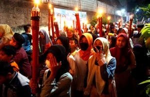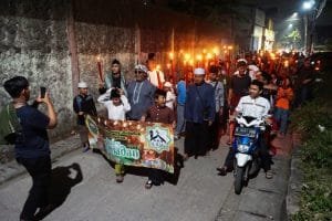Sambut bulan suci Ramadhan 1444 H, kumpulan remaja Masjid Al-Ikhlas (KURMA) dan warga RW 02 Kampung Bubulak, Kelurahan Batujaya, Kecamatan Batuceper tumpah ruah grlar pawai obor, Minggu (19/03/2023), malam.